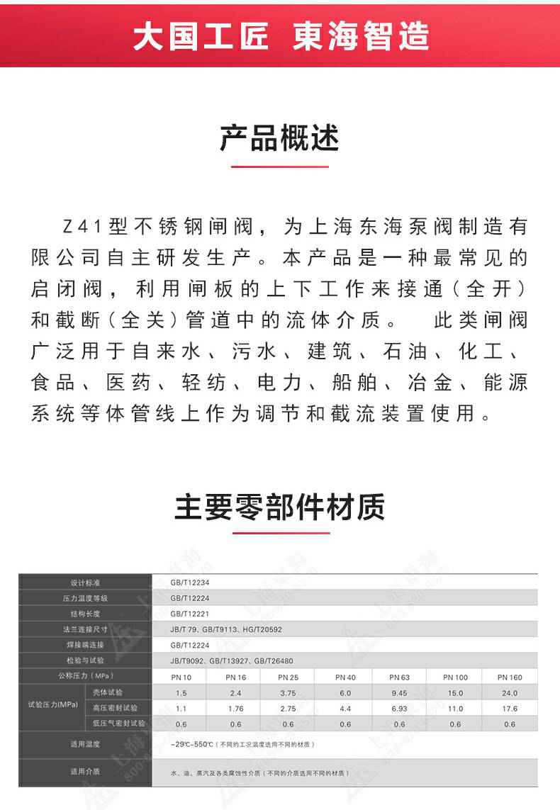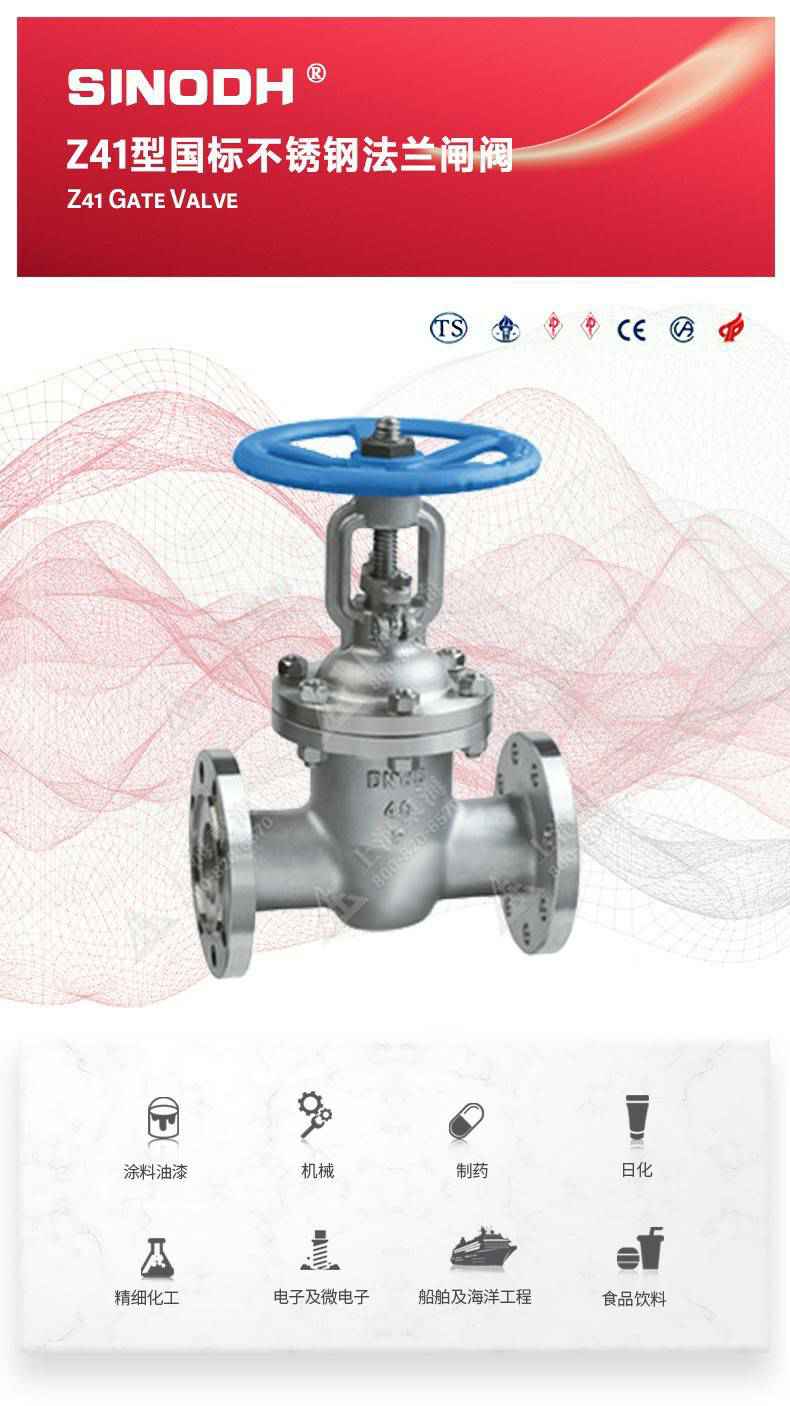 Z41型不锈钢闸阀,为江南app体育登录入口-(中国)官方网站自主研发生产。本产品是一种最常见的启闭阀,利用闸板的上下工作来接通(全开)和截断(全关)管道中的流体介质。此类闸阀广泛用于自来水、污水、建筑、石油、化工、食品、医药、轻纺、电力、船舶、冶金、能源系统等体管线上作为调节和截流装置使用。