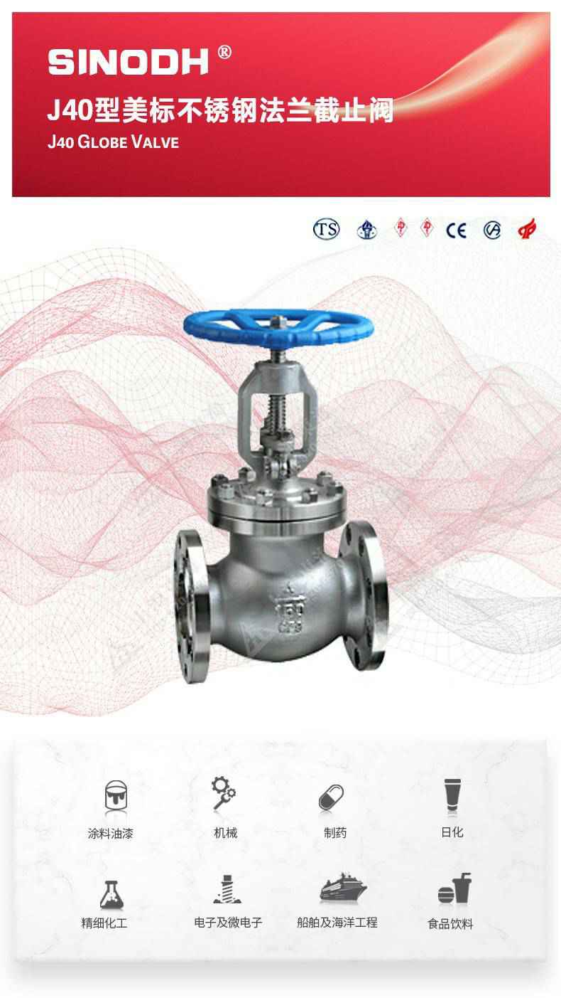 J40型美标不锈钢截止阀,为江南app体育登录入口-(中国)官方网站自主研发生产。本产品的设计制造符合美国国家标准ANSIB16.34,美国石油学会标准AP1 6D和AP I 600要求,产品结构紧凑密、刚性好、封性性能优秀是一种最常见的启闭阀,利用闸板的上下工作来接通(全开)和截断(全关)管道中的流体介质。